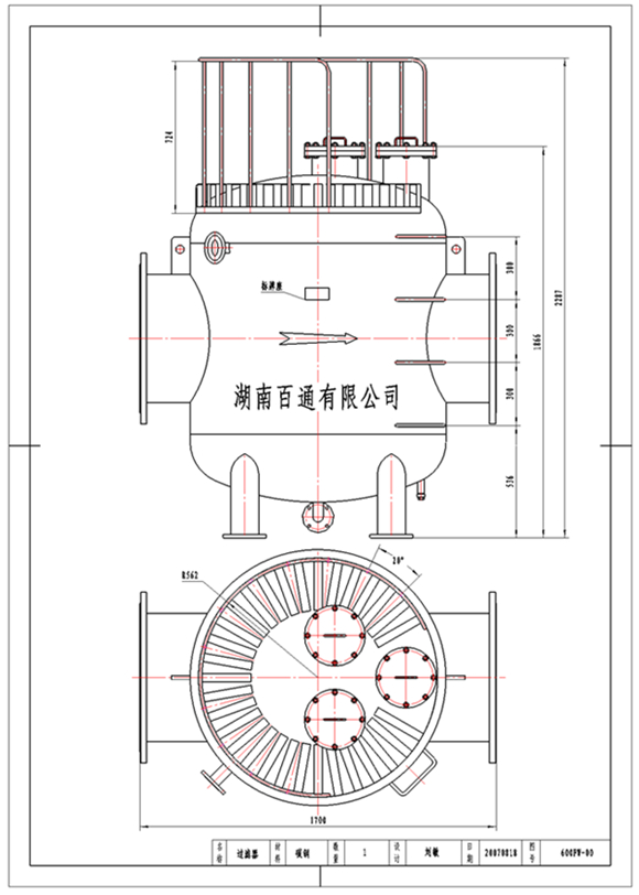 过滤器采用多滤芯结构。过滤器顶部有3个手孔,所有的滤芯都通过这3个较小的手孔进行安装和拆