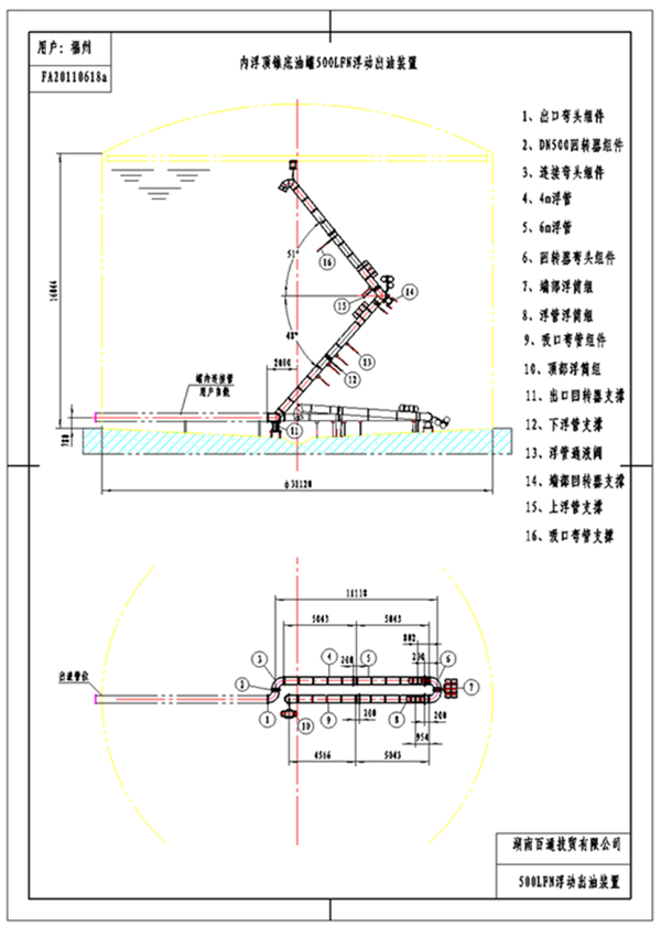 中航油福建分公司长乐机场油库Dn500内浮顶储罐浮动出油装置