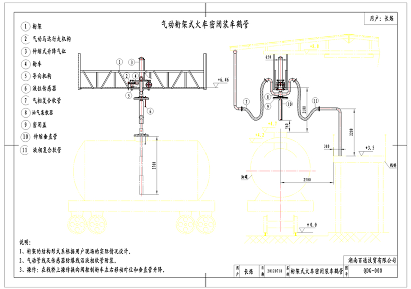 中石化长岭炼化火车气动桁架密闭装车鹤管